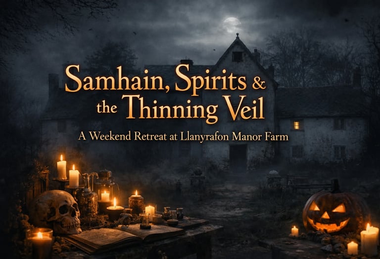 Llanyrafon Manor Farm is a 16th-century gentry house, constructed upon the remains of an earlier Cistercian monks’ farmstead. Elements of the original monastic site remain visible today—stonework and boundary lines shaped by hands devoted to ritual, prayer, and cyclical living. This is a house imbued with memory, where history lingers. At Samhain, these layered pasts resonate with particular intensity.