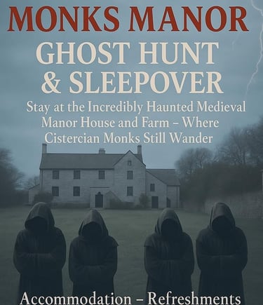• Many ghosts haunt the manor house, outbuildings and grounds – monks have been heard and seen inside the house and wandering the grounds , children’s spirits play on the upper floors, Walter Griffiths’s makes an appearance from time to time (as captured during one of our events in 2025) - Florence Griffiths roams the first floor corridors and her bedroom.